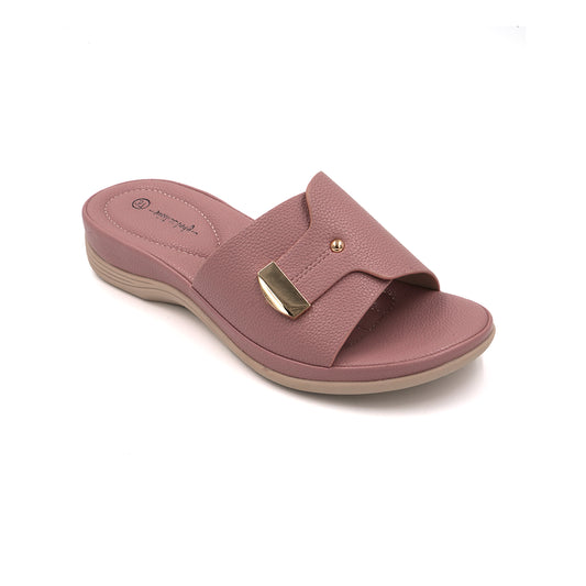 These blush pink slip-on sandals feature a comfortable insole and durable outsole for reliable wear. The soft upper and smooth liner ensure comfort, while the gold accent adds a refined touch, perfect for stylish, everyday use.