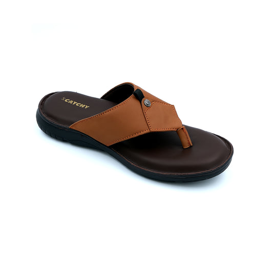 This Catchy men's brown leather flip-flop slipper combines premium leather for the upper, insole, and liner with a durable polyurethane outsole. The leather components provide breathability and comfort, while the polyurethane sole ensures reliable grip and longevity. Expertly designed, this slipper offers a refined look without compromising on everyday practicality....