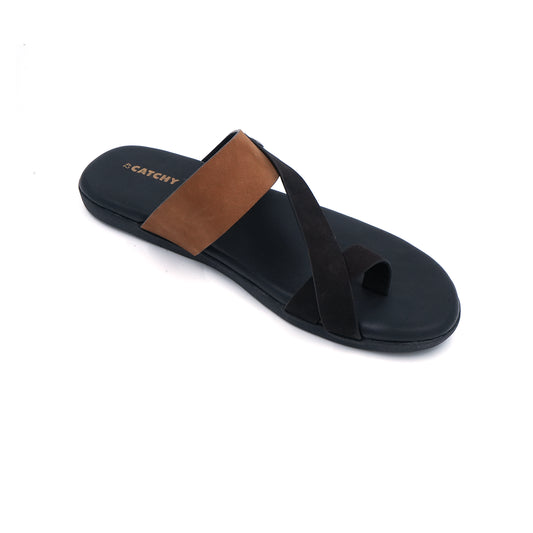 The Catchy Men's Black & Brown Casual X-Strap Sandal is crafted with genuine leather for the upper, liner, and insole, providing exceptional comfort and durability. Its thermoplastic rubber outsole ensures reliable traction and long-lasting wear. This expertly designed sandal offers a premium combination of quality materials for everyday casual elegance...
