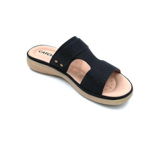These blush pink slip-on sandals feature a comfortable insole and durable outsole for reliable wear. The soft upper and smooth liner ensure comfort, while the gold accent adds a refined touch, perfect for stylish, everyday use.