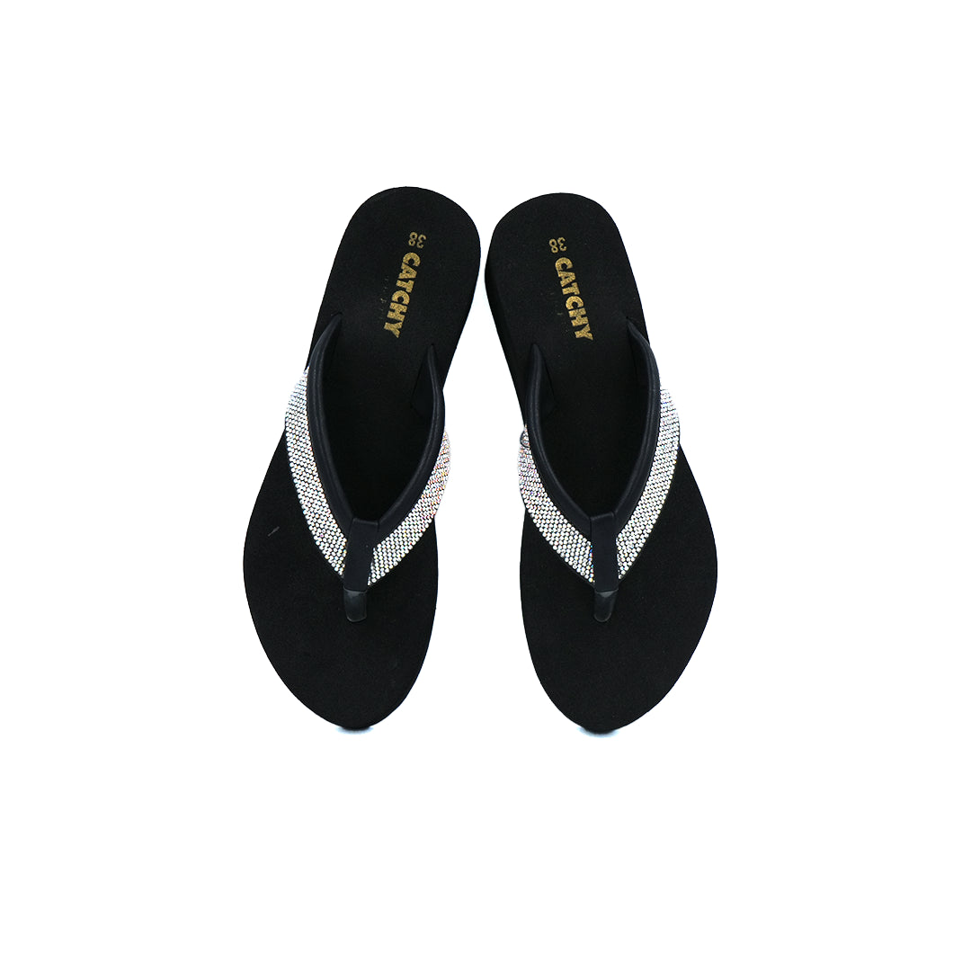 These Catchy Sparkle Strap Platform Sandals feature an EVA insole and outsole, providing lightweight cushioning and reliable support. The upper is crafted from fabric embellished with stones, delivering a refined and eye-catching appearance. A fabric liner enhances comfort and breathability, making these sandals a stylish and practical choice for sophisticated footwear needs.